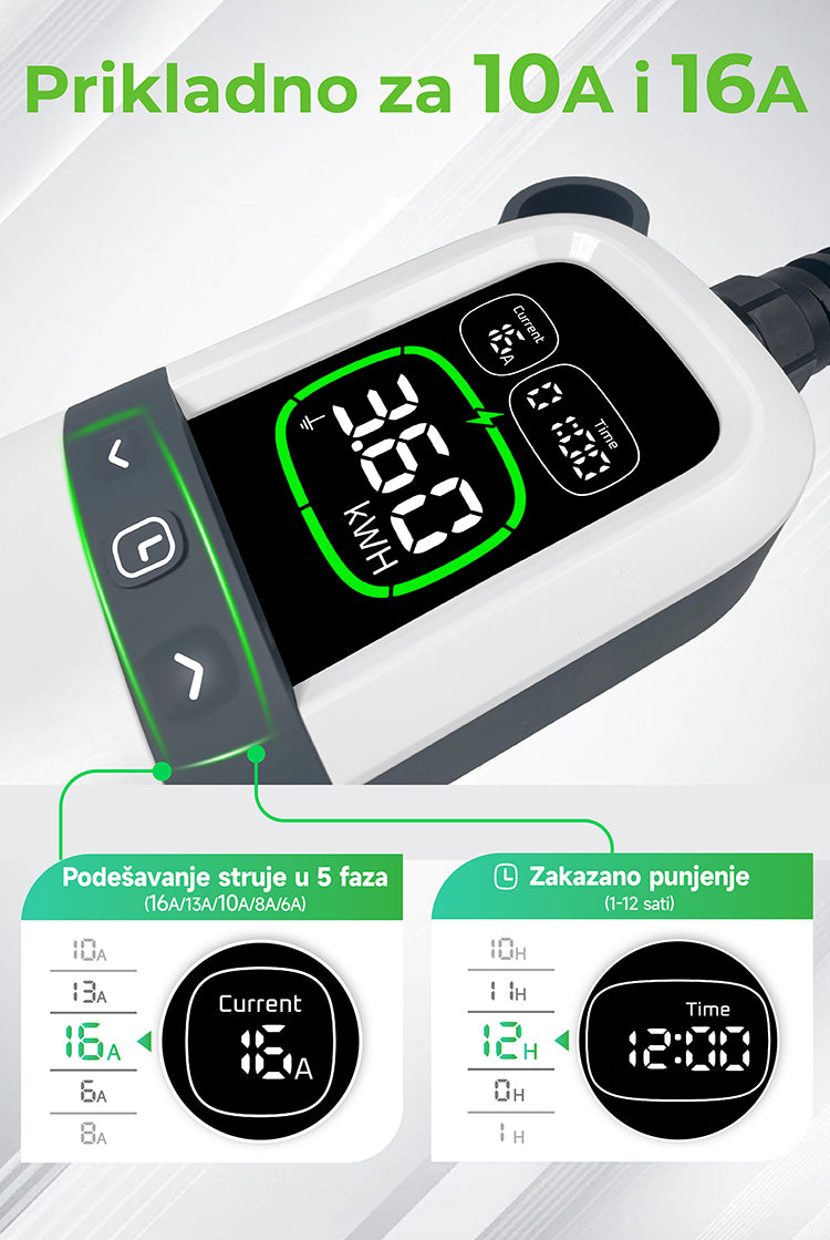 Praktičan doseg za punjenje u stvarnom svijetu - optimizirana duljina kabela pruža dosljednu izvedbu bilo da punite u garaži ili na otvorenom prostoru.